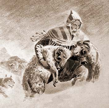 The farm staff typically consisted of the owner of the farm, his family, as well as extended family who lived with the farmer in the longhouse. In addition, hired men and servants worked at the farm, in exchange for wages and room and board. Most farms kept slaves, a practice that was widespread throughout the Viking lands on both large and small farms. Slaves generally worked alongside the hired workers on the farm, but probably were assigned the harder and less desirable work. Lastly, shepherds were hired to tend the sheep, but this work had little respect. The low status of shepherds is revealed in several sources. Shepherds received no wages, but only room and board. The law (Grágás K.78) prohibited farmers from assigning shepherding duties to the hired men, which would be demeaning. In chapter 26 of Reykdæla saga og Víga-Skútu, Skúta pretended to be a shepherd while he was being pursued. He turned his cloak inside-out (to display the less showy inner lining), broke off the spearhead from its shaft (turning it into a staff and appearing weapon-less), and took the saddle off his horse (to appear poor). Riding bareback, Skúta shouted at the sheep as he rode towards his pursuers. As he passed, they didn't recognize him as the imposing man with weapons they had been chasing. |