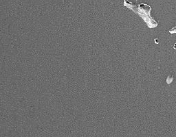 In both cases, a section was cut, mounted, and polished for analysis. The samples show iron with inclusions of other material, typically slag. Our H001 sample (right) was highly porous, with numerous voids. The H002 sample had fewer voids and inclusions. |