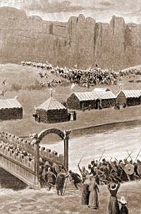 Other types of terrain simply could not be crossed. Rough lava fields chewed up feet and shoes and broke ankles and legs. The lava field Berserkjahraun in Iceland (left) was avoided, resulting in a long detour around the lava, until Styr tricked a pair of berserks into building a path, as described in chapter 28 of Eyrbyggja saga. The path is still visible today. |