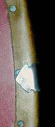 Some shields have evidence of iron or bronze clamps around the edge, perhaps to hold the leather edging in place. A speculative reconstruction of an iron clamp is shown to the right. Occasionally, these clamps were not uniformly distributed around the edge of the shield, suggesting that they were used to reinforce and protect a damaged edge.